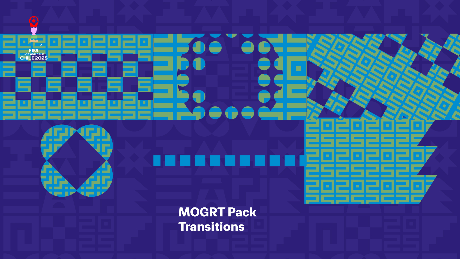 Création d'un pack d'habillage MOGRT prêt à l'emploi pour montage de Bests Of et Promos de la coupe du monde de la FIFA - U20 World Cup - Chile 2025
